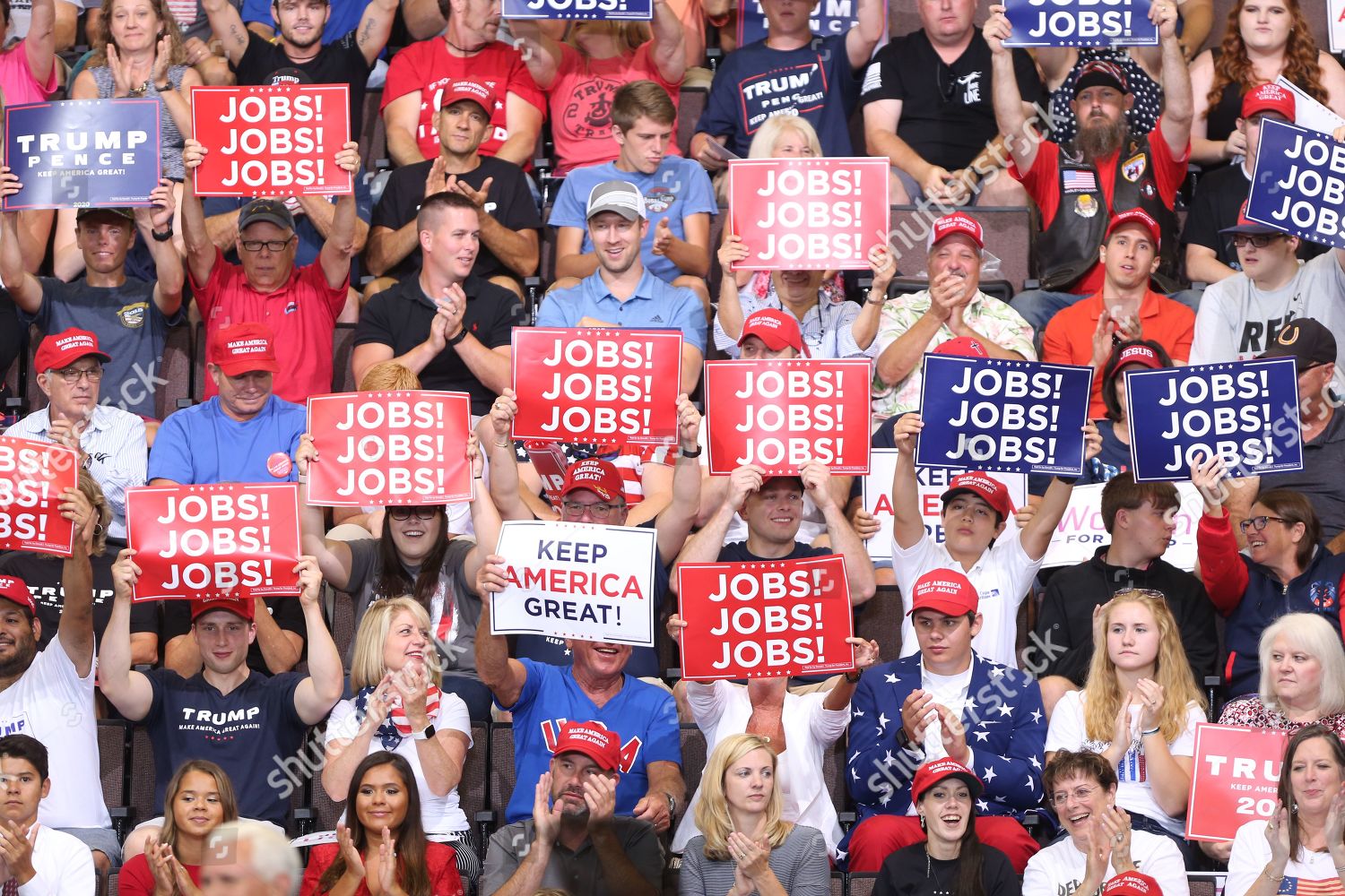 - Mandatory Credit: Photo by MARK LYONS/EPA-EFE/Shutterstock (10352368r) Supporters cheer during a rally held by US President Donald J. Trump at the US Bank Arena in Cincinnati, Ohio, USA, 1 August 2019. Trump is appearing at several Make America Great Again rallies around the country. Trump rally in Cincinnati, USA – 01 Aug 2019