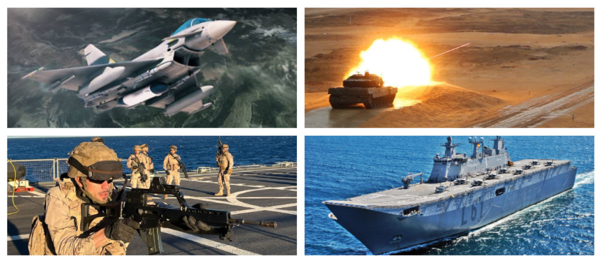 Los planes navales incluyen la sustitución del buque logístico de aprovisionamiento en combate (BAC) ‘Patiño’, mejoras en los buques anfibios tipo LPD y la incorporación de un nuevo buque hidrográfico oceánico destinado a trabajos de investigación del fondo marino, así como la compra de un sistema de guerra electrónica de última generación.