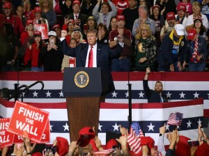 U.S. President Donald Trump reacts during a campaign rally at El Paso County Coliseum in El Paso