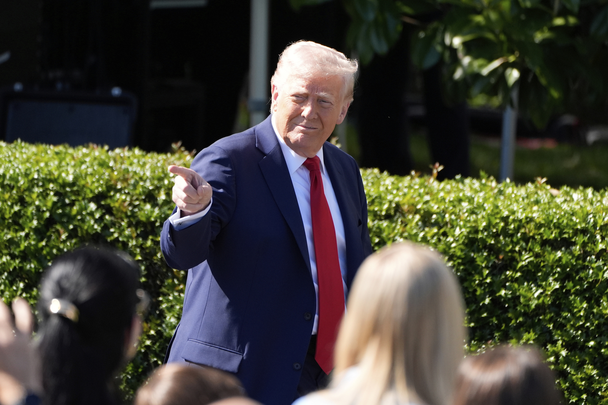 - President Donald Trump arrives to welcome the Super Bowl champion Philadelphia Eagles NFL football team to the South Lawn of the White House, Monday, April 28, 2025, in Washington. (AP Photo/Alex Brandon)