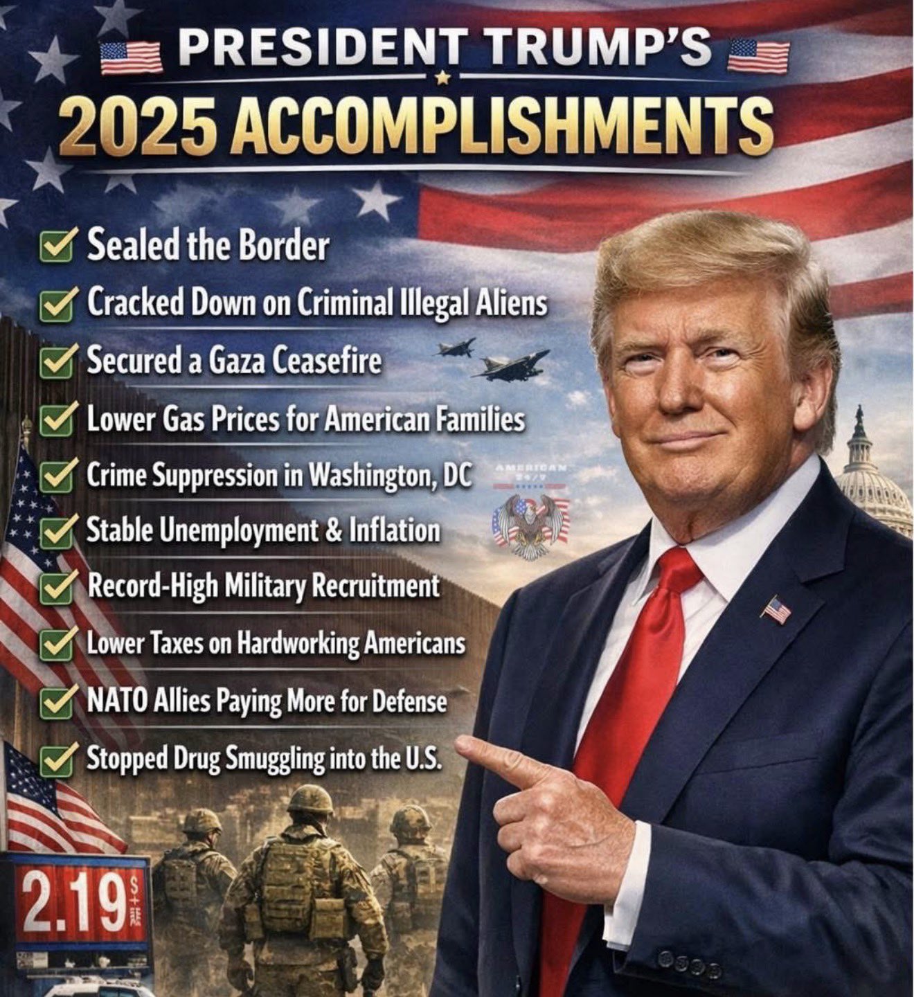 El año 2025 nos ha dejado una larga lista de más de 100 triunfos del presidente Trump, desde los éxitos económicos, la independencia energética, pasando por la lucha contra los cárteles de la droga y los acuerdos de paz, hasta los acuerdos de comercio recíproco, los aranceles, la seguridad fronteriza y el fortalecimiento de las Fuerzas Armadas, este segundo mandato presidencial va camino de ser mucho mejor que el primero, que ya fue bueno.