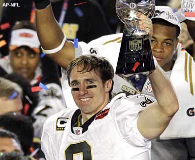 Con esta brillante actuación, Brees cumplió con lo que él mismo había llamado “su misión” con los Saints y con la ciudad de New Orleans, devastada por el Huracán Katrina hace cinco años, de llevarlos a la “Tierra Prometida” y conquistarla. El quarterback habló apenas hace unos días de que el espíritu de su madre, quien se suicidó en agosto pasado, lo había apoyado y había sentido su presencia durante todo el año. Se entienden estas declaraciones de Brees en su contexto humano, ya que es un hombre profundamente religioso; el quarterback distribuyó sus envíos entre 8 receptores, Marques Colston, Devery Henderson, Pierre Thomas, Reggie Bush, Jeremy Shockey, Robert Meachem, Lance Moore y David Thomas, y además entregó el balón a cinco diferentes corredores para un ataque terrestre que sumó 51 yardas. Buen trabajo.