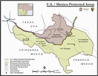 La Región Big Bend/Río Bravo, que abarca Texas, Chihuahua y Coahuila, consta de más de 268 kilómetros de río y tres millones de hectáreas de parques y áreas protegidas a ambos lados de la frontera, y es el hogar de 446 especies de aves, como el correcaminos, colibrís y el halcón peregrino, 3,600 especies de insectos, 56 especies de reptiles, más de 1,500 plantas vasculares, y 75 especies de mamíferos, y ofrece una oportunidad excepcional para los científicos, administradores de recursos naturales y personal de parques para colaborar activamente en áreas que beneficiarán a la gente, los paisajes y la vida natural a ambos lados de la frontera.
