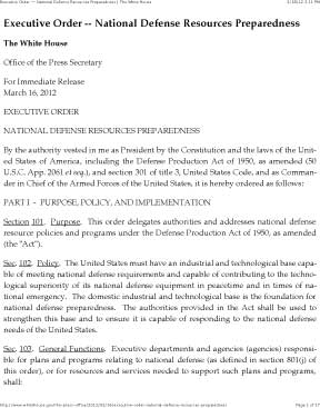 Orden Ejecutiva Preparación de Recursos para la Defensa Nacional