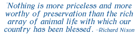 Hace más de cuarenta años, Richard Nixon denominó a la vida silvestre como «Un multifacético tesoro, de valor para los estudiosos, científicos y amantes de la naturaleza, y forma una parte vital del patrimonio de todos los estadounidenses».