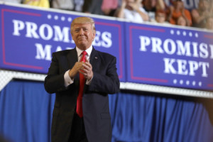 U.S. President Donald Trump leads a rally marking his first 100 days in office in Harrisburg