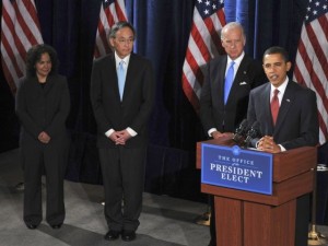 Obama ha manifestado que: «el futuro de nuestra economía y la seguridad nacional está ligado de modo inextricable a un desafío: la energía” y que sus nombramientos “están dispuestos a reformar el Gobierno y a ayudar a transformar nuestra economía de modo que nuestra gente sea más próspera, nuestro país esté más seguro y nuestro planeta esté protegido».