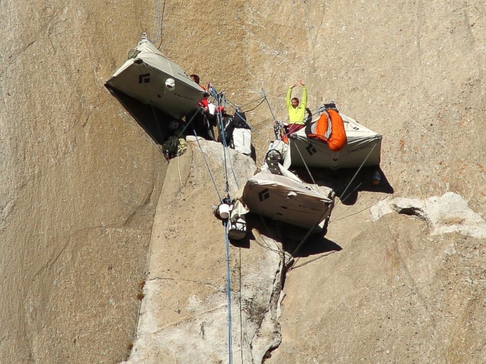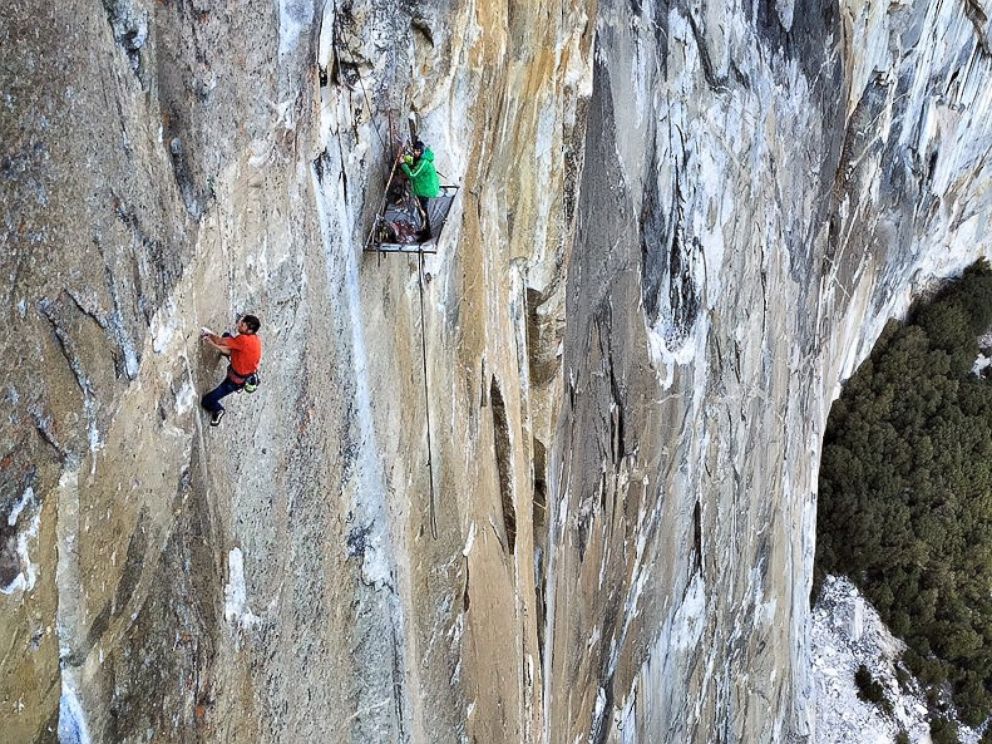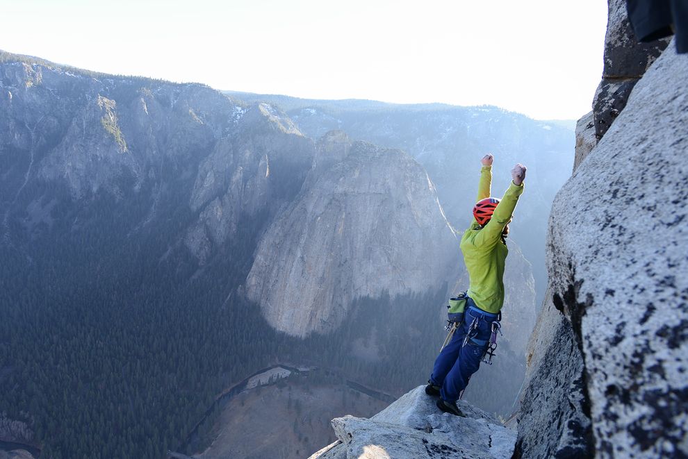 Un lugar y un logro histórico: alcanzaron la cima de la pared de granito El Capitán, situada en el Parque Nacional Yosemite, California, de 2.300 metros de altura, y considerada como la más difícil de escalar del mundo. Lo hicieron por la vertiente más compleja, y ayudados sólo por sus pies y manos.