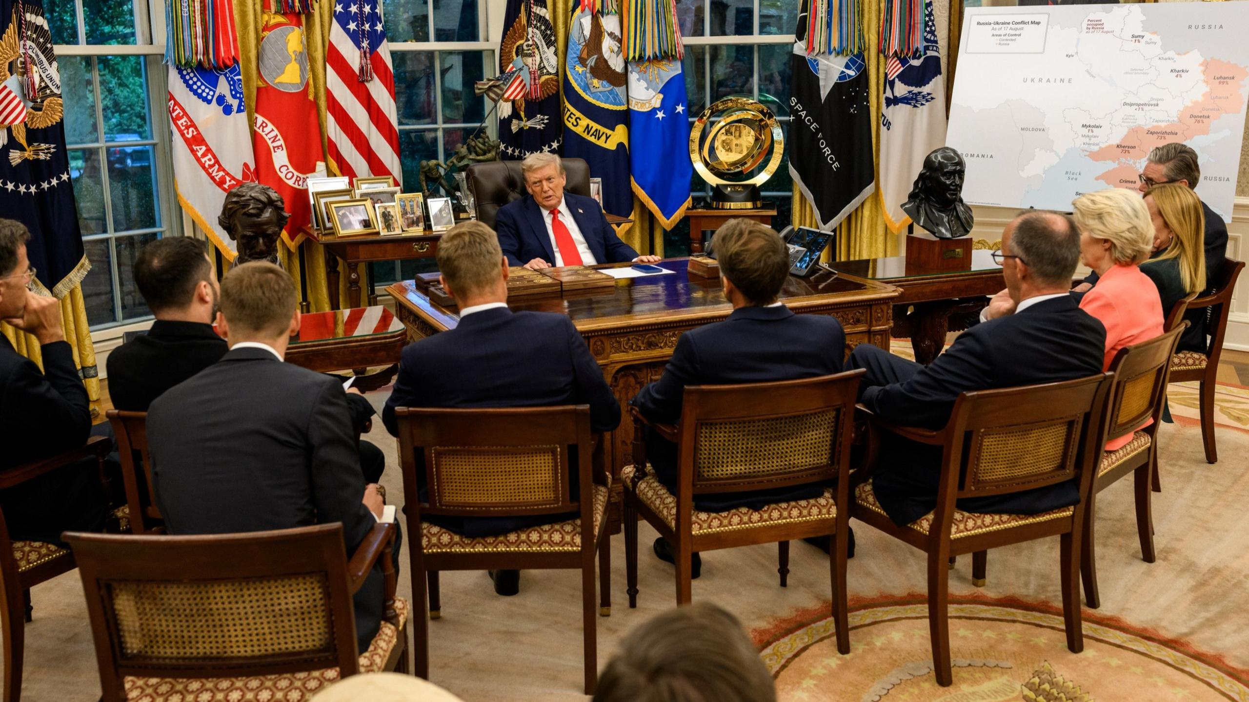 El liderazgo del presidente Trump está convirtiendo la negociación con Putin y los líderes europeos en un cambio estratégico positivo para todos, fortaleciendo la alianza con los aliados y abriendo una nueva relación de cooperación con Rusia.