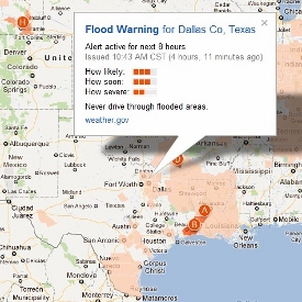 Para empezar, la nueva aplicación de Google Maps mostrará datos climáticos relevantes, alertas para seguridad ciudadana y datos de terremotos, procedentes de la US National Oceanic and Atmospheric Administration (NOAA), el National Weather Service y la US Geological Survey (USGS), que canalizarán los mismos también a través de Google, además de los canales habituales usados hasta ahora, restringidos a personal autorizado. Es, pues, un impulso decidido a la política de compartir información sensible con los ciudadanos en su propio beneficio, que es posible actualmente gracias a la tecnología y a empresas como Google.